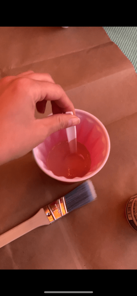 -Paint two coats, drying in between. You can save a certain shade of paint by putting aluminum foil over the top of the plastic cup.